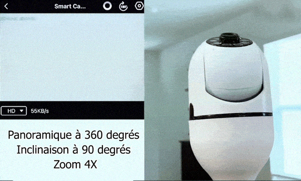 Elle est petite, compacte et très discrète. L'objectif ultra-crisp 1080P avec infrarouge panoramique qui tourne à 360°, les lumières blanches pour une meilleure vision nocturne, l'audio bidirectionnel, les alarmes sonores pour faire fuir les intrus et les fonctions de suivi automatique protègent votre maison et gardent un œil sur vous 24 heures sur 24, 7 jours sur 7 !
