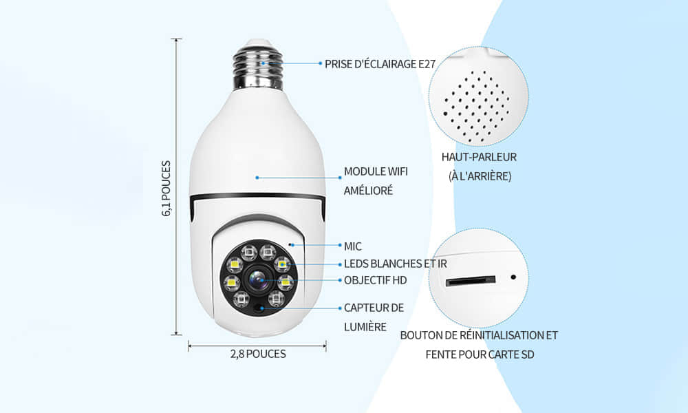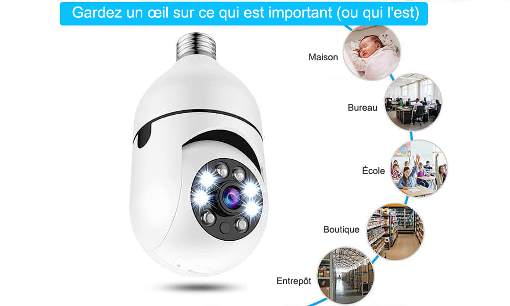 ✅ Installation facile - Connectez la caméra à ampoule à la source d'alimentation, vous pouvez utiliser notre douille E27 équipée, ou utiliser la vôtre. Pas de casse du mur, pas de câblage, simple et pratique.